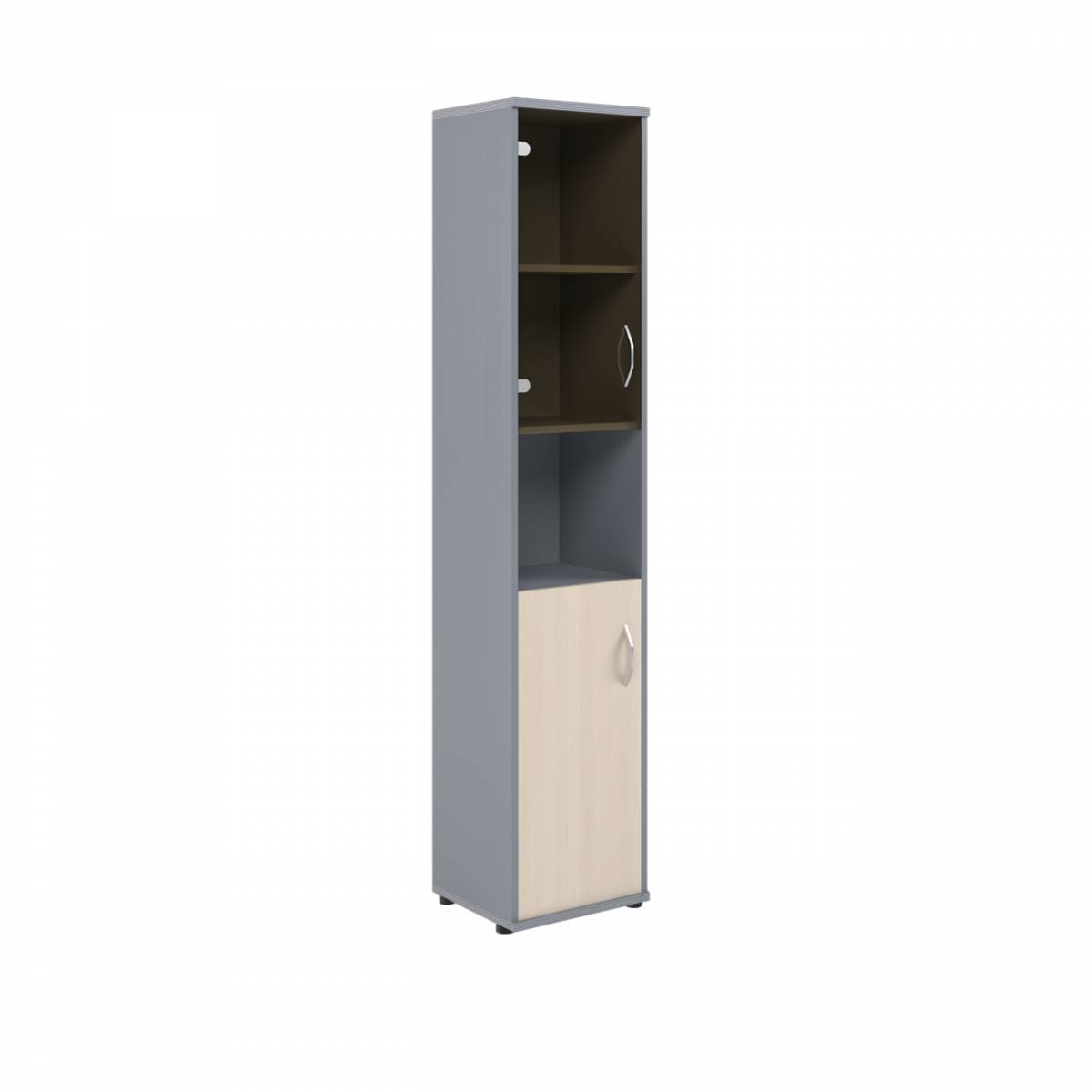 Шкаф колонка с малой глухой и стеклянной дверьми СУ-1.4(L) Клен/Металлик 406*365*1975