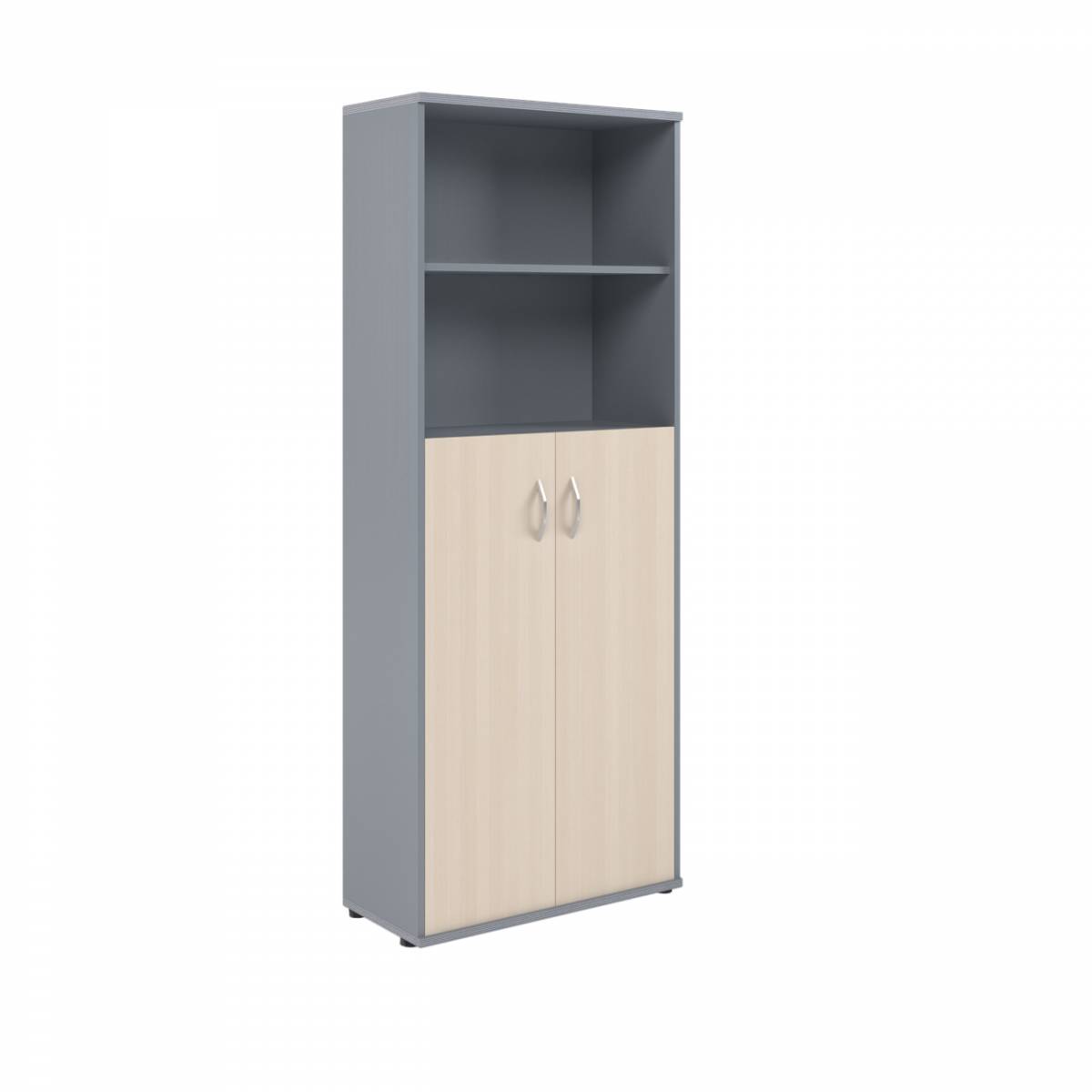 • Шкаф комбинированный малыми стеклянными и глухими дверьми СТ-1.4 Клен/Металлик 770*365*1975
