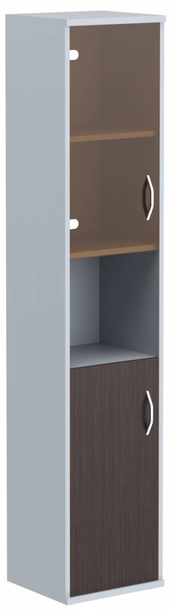 Шкаф колонка с малой глухой и стеклянной дверьми СУ-1.4(L) Венге Магия/Металлик 406*365*1975
